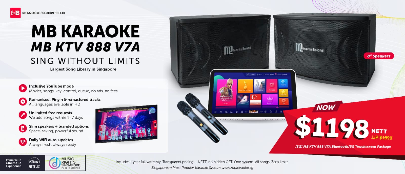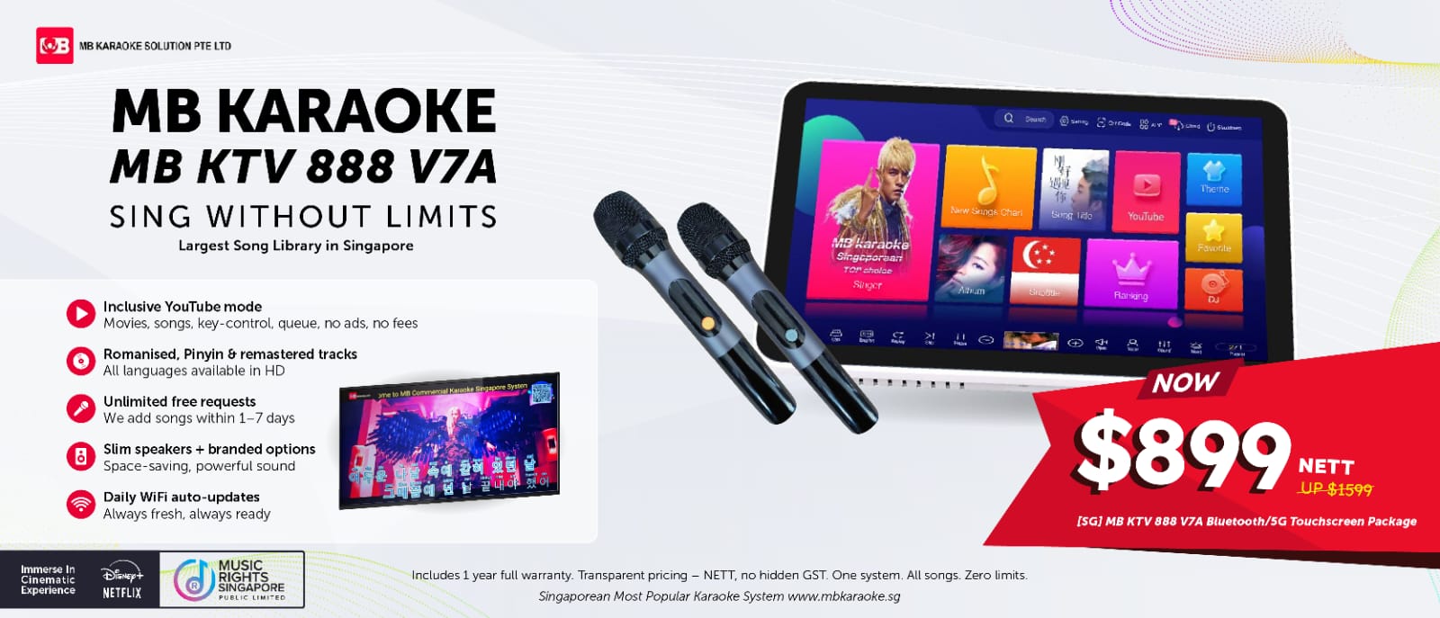 MB Home Karaoke is the market leader for karaoke system in Singapore since 1998. We have since innovate traditional karaoke to a simplified user-friendly home karaoke system. Our products are tested with the highest standards of quality with stringent quality control before reaching the homes of our customers