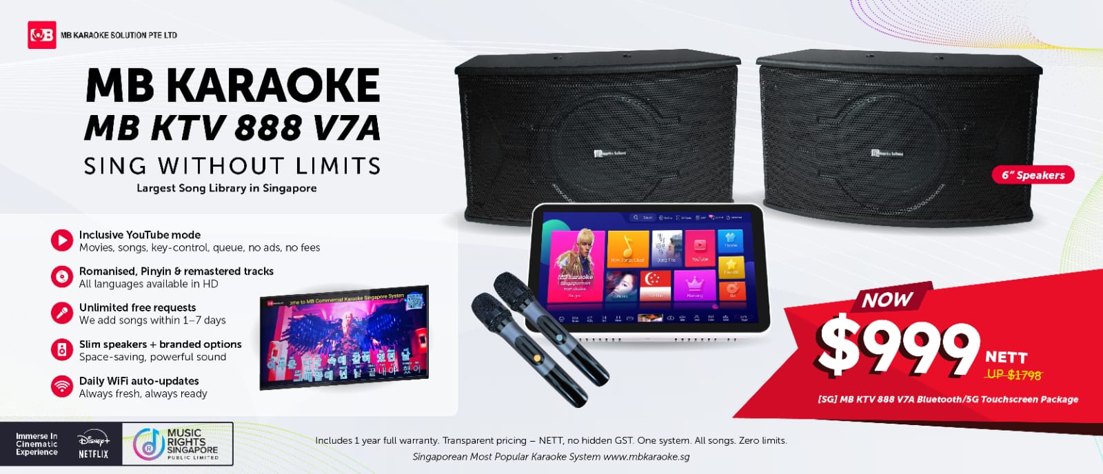 MB Karaoke is Singapore’s most highly rated home karaoke provider on Shopee, Google, Instagram, Facebook & more. We’ve also been featured for our home karaoke systems on digital platforms like The Smart Local .